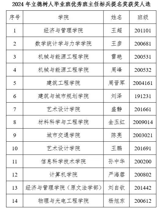 经个人申报、公司推荐、公司资格审查、现场答辩以及校内公示环节,确定6名班主任为永利集团官方网站2024年立德树人毕业班优秀班主任标兵奖获奖人选,14名班主任为永利集团官方网站2024年立德树人毕业班优秀班主任标兵提名奖获奖人选。获奖名单如下: