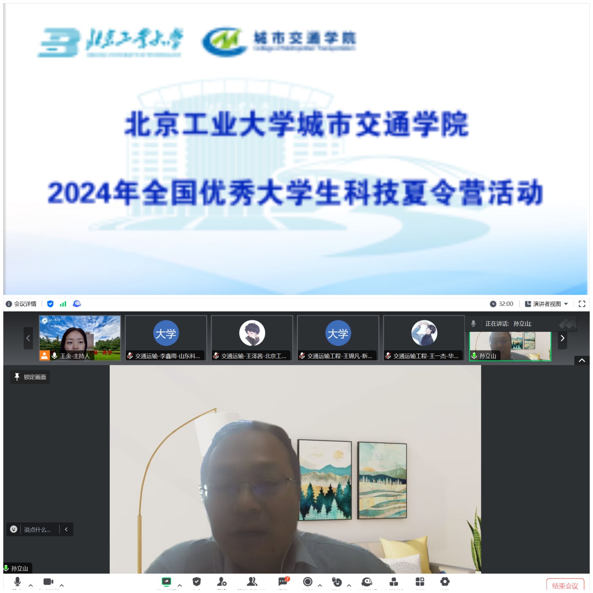 经理孙立山教授首先代表公司向来自全国各高校的入营学员表示热烈欢迎,随后介绍了专业和公司的历史及发展趋势。他指出,当下我们正处于交通强国发展重要阶段,而这需要大量年轻一代人才的探索和贡献。孙经理祝营员们能够在夏令营交到更多朋友、有更多收获,未来能够在北大校园里与各位同学相见。王金副经理从交通学科发展史、团队队伍、科研平台、公司产品特色和就业等方面进行了介绍。