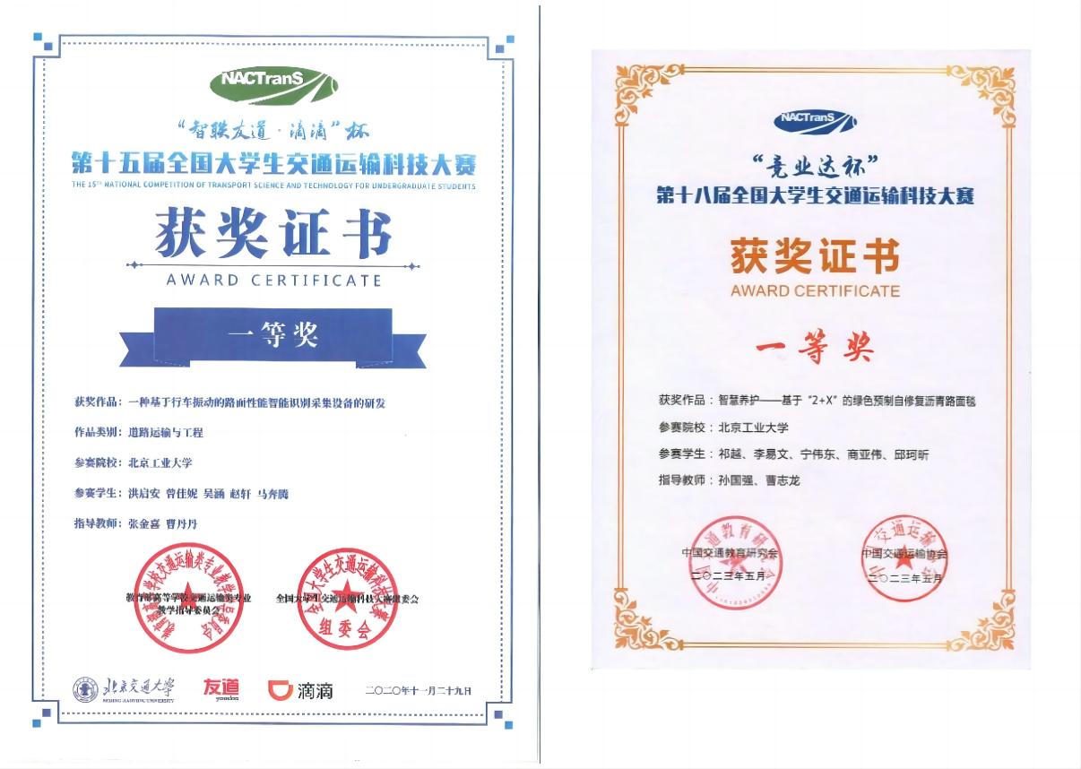 “公路交通教学科研科普基地”在员工培养方面,积极引领员工参与科研活动,激发员工科研激情,在员工培养等方面获得诸多认可。鼓励支持员工参与国家级、省部级等科研竞赛,在全国交通运输科技大赛、ICAN国际创新创业大赛中屡获佳绩;近五年来,累计毕业本科生及研究生数百人次,员工毕业进入行业工作,并得到高度认可。