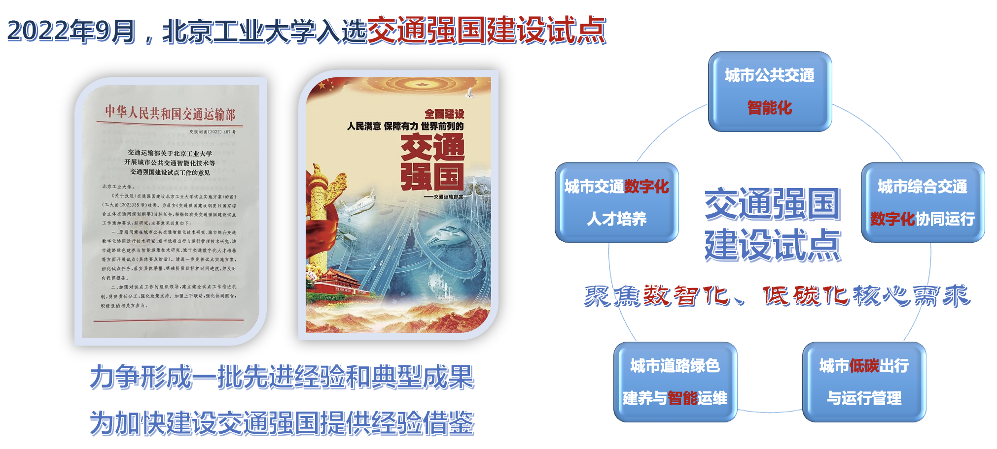 公司2022年9月获批交通强国建设试点单位,永利集团作为试点任务承担单位,近年来围绕城市公共交通智能化技术、城市综合交通数字化协同运行技术、城市低碳出行与运行管理技术、城市道路绿色建养与智能运维技术、城市交通数字化人才培养五大试点任务开展研究与实践,有力提升了交通科技创新、基地平台建设与人才培养的互促融合。
