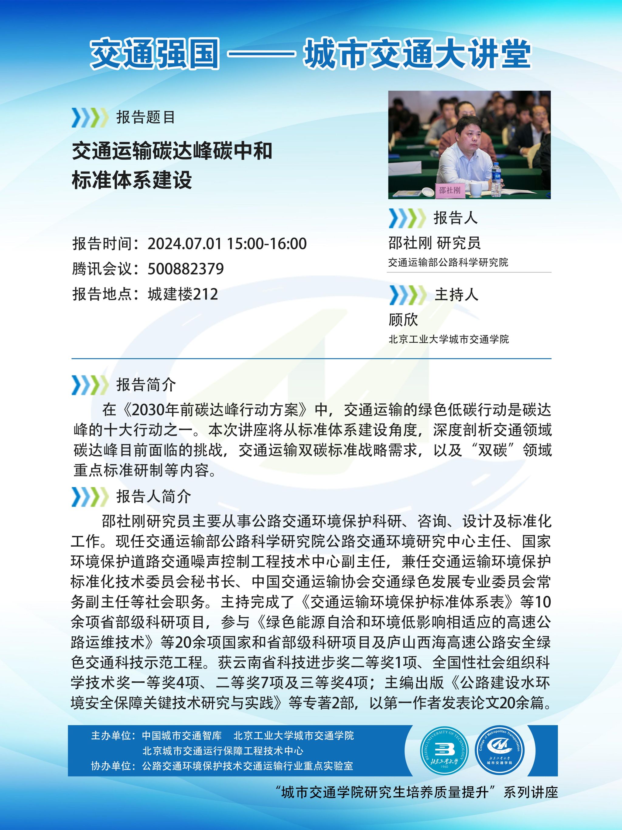 【交通 | 学术报告】 交通强国·城市交通大讲堂——交通运输碳达峰碳中和标准体系建设
