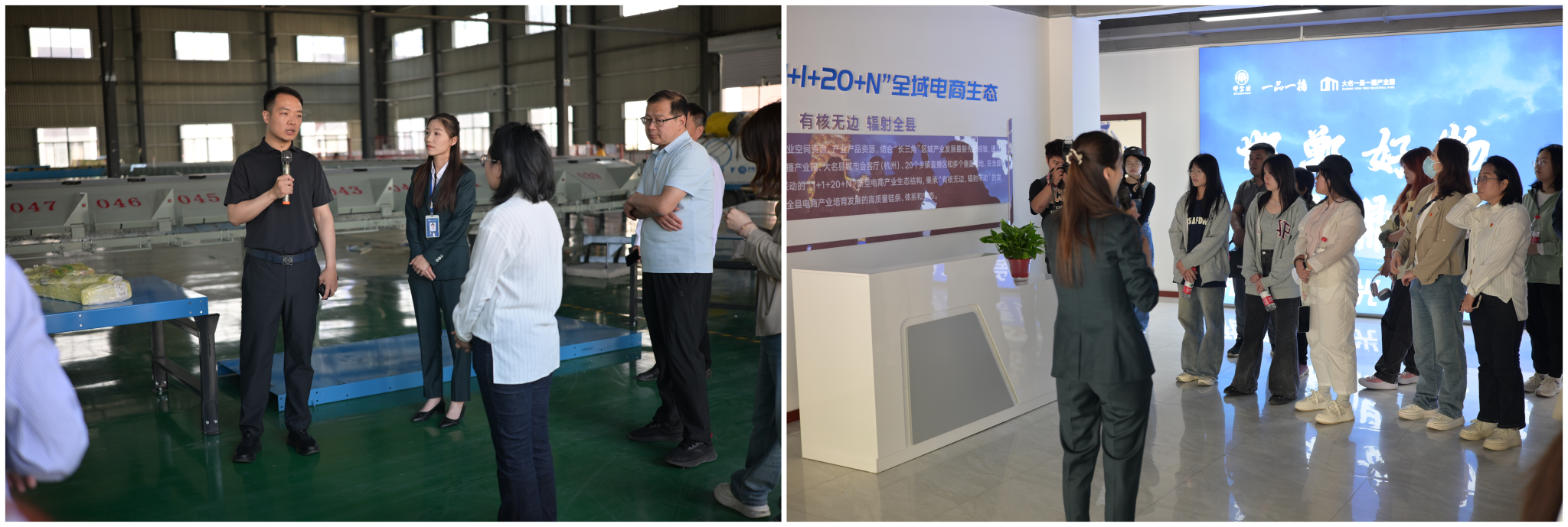 11日,师生实践团队走进大名县"一品一播"产业园,深入考察当地创新打造的"客货同网+多站合一"农村物流体系。在专业讲解员的带领下,师生们依次参观了电商直播基地、智能化物流分拣中心以及现代化云仓储区,切身感受到县域产业发展的科学布局与创新活力。通过实地研学县乡村三级物流网络建设,师生们深刻体会到现代交通系对乡村振兴的战略支撑作用。