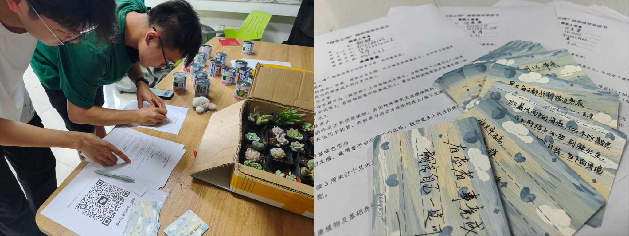 参与者在卡片上留下心灵寄语,记录自己生活中的小确幸、遇到的烦恼、表达对未来的期望和梦想;领取多肉等绿植并签署《领养承诺书》,承诺定期照料与记录;加入专属线上社群,每周定期上传植物成长照片与简短“心情日记”,记录养护心得。参与者不仅能体验生命成长的喜悦,还能在社群分享中收获支持与共鸣。