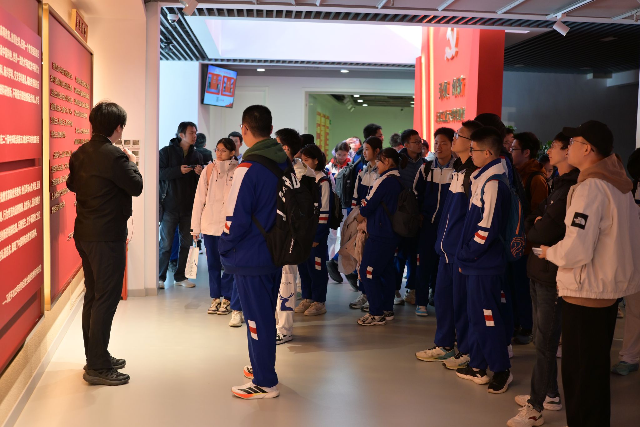 党建馆作为本次游览的最后一站压轴出场。永利集团党建馆结合本校特色,介绍了“青马班”青年教师思想建设思路、党建工作“样板支部”工作方式等。此外,党建馆还通过现代电子设备,展示公司各学部党委工作理念、具体工作举措和成效等,让来访员工切实感受到党建工作的落地实施。
